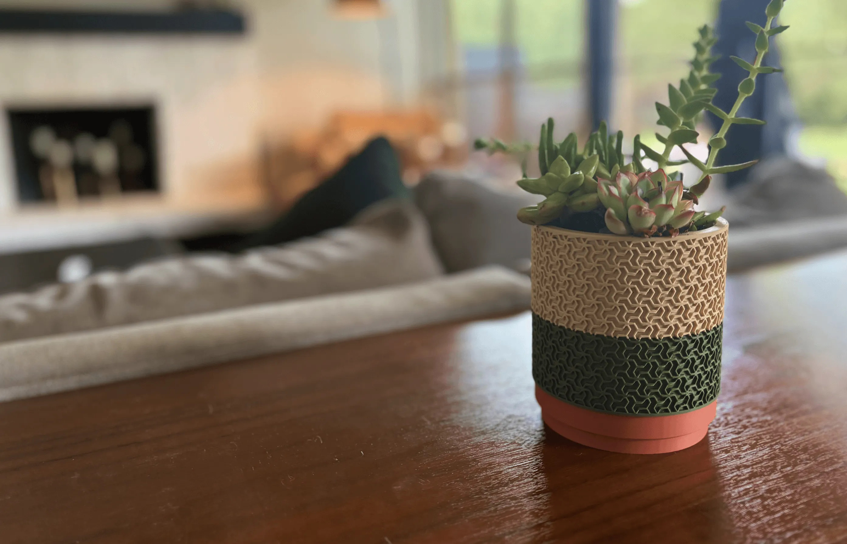 We wanted a planter that looked great and was better for our plant friends. To do this, we designed a pot that helps avoid root rot, conserves water, and looks great in any space. Get to know the first-of-its-kind 3D-printed planter designed by hand with two separate color bands.